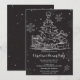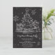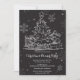 Inbjudan till Julfest till jul. Inbjudan till julmiddag Julfest. Julgran. Svartvitt bakgrundsvärde för krita.