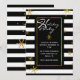 Snyggt, en modern inbjudan till helgdag i ett svartvitt vågrät rand mönster. Bilder av guld tittar snöflingor dekorerar bakgrunden och ett svart textområde med guld har vit text som läser Glad helg, i ett typografiskt stil. Anpassa den vita texten för julfesten. Matchande produkter är tillgängliga.