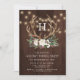 Rustiskt trä och ljus med monogram- och vattenfärgblommor. Du kan anpassa textdetaljerna på inbjudan.