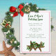 Starfish julfest-inbjudan till ett hem party. Två sjöstjärnor med löv och bär dekorerar grund i platta, vita inbjudningar. Textmallar är mörk grönt med en tunn, ljusröd linje gräns runt kortet. Omvänd är också ljusröd. Den här inbjudan finns också tillgänglig som en omedelbar nedladdning.