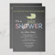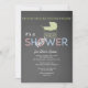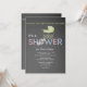 En charmerande inbjudan baserad på en bakgrund av en krita som har en barnvagn i baby, en delikat vind och ord"dusch" i rosa och blått.