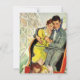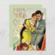 Vintageillustration kärlek och romantik bild med ett ungt par som åker berg- och dalbana på en lokal nöjespark. Mannen har armen runt kvinnan för att hålla henne trygg.
