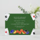 En perfekt inbjudan för möhippor eller kasinoevenemang. Designen har pokerchips, tärningar och ett Ess av varje färg i hörnen på en grön filtliknande bakgrund.