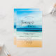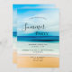 En inbjudan till en kust vid sommaren party, stranden party. En sandstrand, hav och blå himmel som bakgrund. Mallar för information om party. Bakåt: Samma bakgrund som på framsidan.