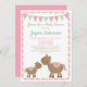 En söt tjej, en babydusch. I persikor, rosa och mynta med en mamma och baby häst vid grund.