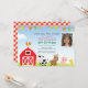 Inbjudan till lantgård med anpassningsbar foto. Land Farm Animal Barnyard. Barn Cow Gris Horse Chicken. Pojken eller tjejen Bday. Första födelsedagen. Röd och vit kontrollerad bakgrund. 1:a 2:e 4:e 4:e 7:e 8:e 9:e 10:e 11:e 12:e 13:e 14:e 15:e 6e, alla åldrar. Utskriftsformat digitalt.