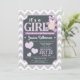 Kute, lavendelns lila och grått nalle-barnduschinbjudan. Grått och vit schevron mönster-bakgrund. Det är en tjej!