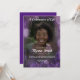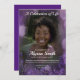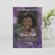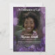 Inbjudan eller meddelande om begravning, minnesceremoni eller firande i livet. Med en lila blomma övertäckt för att kunna gå över ett foto som du själv väljer.