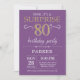 Överraska 80:e födelsedagsinbjudan med bakgrunden Lila och Guld Glitter. Chalkboard. Vuxen födelsedag. Manar eller Women Bday Inbjudan. Vilken ålder som helst. Om du vill göra ytterligare anpassningar klickar du på knappen Anpassa och användor verktygen som är utformat för att ändra mallen.