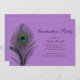 En stor fågelfjäder på lila bakgrund accentuerar denna inbjudan till studenten, ge en chic hippi boho.