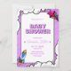 Bläddra till en glatt babydusch med den här beundransvärda tecknad-stil inbjudan! Med mjuk pastellproduktion lila, stjärnsprängningar, moln och raketuppskjutning är det perfektens val för ett lekfullt och vismiskt firande.