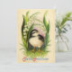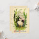 Lilla fågel med vit och svart färg, som en fink eller bergsdjup chick-a-dee, omgiven av löv och blommor på inbjudan till Påsk-dagen.