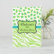 Anpassa den här sofistikerade inbjudan till en 30års födelsedag party eller annan händelse. Utformningen har limgröna och vita zebra ränder och leopard- eller fuktformade skinsar som kombineras för ett trendig och modern utformning. En limmargrön emblem med svart skisser på en turkospaltblått pub och skapar ett personaliseringsområde med födelsetalflickans namn och 30års födelsedag Party ord som kan anpassas till andra ord. På baksidan av inbjudan finns fält för all information till party. Du kan enkelt ändra och ta bort fält efter behov. Färg är kalkgrönt, vitt, turkosa tealblått och svart. skinsar för vild av djur för grafisk design är en hett- och designtrend och är extremt populära från mode till hemdäck. Den här sofistikerade zebra- och leopardskrivarsamlingen är en av flera färg-kombinationer som du kan välja mellan inbjudningar och koordinater med andra produkter för en snyggt party.