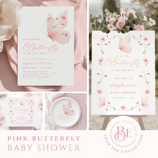 Little Butterfly Baby Shower-inbjudan med en charmig rosa-fjäril som är försedd med delikata blommigtar. Perfekt för att fira ett sött flicka, ger den här inbjudan en vismisk beröring med sitt mjuka färg och naturinspirerade design.