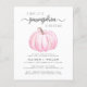 En söt budgetvänlig duschinbjudan till par flicka med texten "En söt liten Pumpkin är på väg" i enkel grått-typografi och ett snyggt-skript, och en pastellpumpfärgad rosa-vattenfärg.