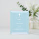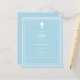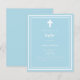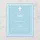 En ljusblå bakgrund, dekorerad med ett vitt ram och ett vitt kor personaliserar och lägger till namn och detaljer. Vit text. 1 lakan = 1 inbjudan tryckt kant till kant.