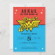 Fira ditt barns superhjältefödelsedag med dessa klassiska blåa och röda kvinnofödelsedagsinbjudningar. Anpassa genom att lägga till information om party!