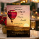 Romantisk inbjudan till förlovningsfest med en luftballong över ett drömslandskap vid solnedgången.