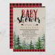 Inbjudan till Lumberjack Red Play Boy Shower med grönt Skog och rustic stil, denna lumberjack-inbjudan är perfekt till din babydusch