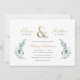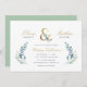 Personlig med prisvärda anpassningsbar för utskrivna bröllopsinbjudningar med din händelseinformation. Den här eleganten är utformad med ett faux-guld-folie-mellanhand med delikata blommigtar för blått och grönt vattenfärg på vit bakgrund. Använda designen verktyg för att anpassa texten, redigera typsnitt och färg eller lägga till egna foton för att skapa en bröllopsinbjudan för klasser och snyggtar.