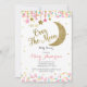Över Måne Baby Shower-inbjudan till flicka med måne, stjärnor och vackra faux guld glitter.