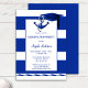 Inbjudan till marin blå och vit studentfest med en minimalistisk marin konstruktion med ankare och studenten hatt.