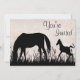 Inbjudan till mässor och föl, betande häst, babysk