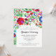 Perfekt för ett mål eller mexikanska tematiska babyduschfiesta, det här lodrät och den fullkomligt personlig vita inbjudan har en skarp ram av blommor och löv som inspirerats av den färgstarka broderiet hos mexikanska hantverkare. Den mönstrade baksidan fortsätter temat eller kan enkelt ersättas med ett favoritfoto eller mer text.