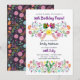 Söt vattenfärgskonstblommor, blommigt fiesta-inbjudan med handskriven stil-typografi, tuppar (fåglar) och kakti. Redigera texten till kostym efter behov. För matchande objekt redigerar anpassningsbarna kontaktdesignern LeahG.
