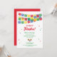 Den här färgstarka inbjudan om perfekt att fira en första födelsedag med ett mexikanskt tema. Den har några banderoller med skuren papper eller slagit pappert flaggor som är typiska för mexikanska festliga dekorationer. Ord "First Fiesta" kompletterar lycklig-konstruktionen. Den här inbjudan anger tonen för en uppseendehändelse och det är enkelt att matcha med primära färg party-förråd för ett helomvändande, ljust utseende.