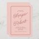 Den här bröllopsinbjudan innehåller en elegant och modern design med en mjuk rosa bakgrund och djup röd text. Namn visas i en snyggt, ett flytande skriptteckensnitt, som lägger till en aning romantik och en sofistikering. Resten av uppgifterna, inklusive datum, tid och plats i bröllop, presenteras i ett rent, minimalistiskt sans-serif-teckensnitt som gör det enkelt att läsa. En tunn, rundad rektangulär gräns ramar i innehåll, som förbättrar det totala förfinade estetiska ämnet. Kombinationen av mjuka pastelltoner och klassisk typografi gör denna inbjudan till perfekt för en chic och tidlös bröllop firande.