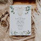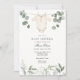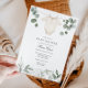 Baby Shower-inbjudan med en ram av vattenfärgen eukalyptus och grey med en baby-kroppsdräkt hängande från en klotelin. Anpassa med din information så att mamma blir det. Klicka på "klicka för att anpassa ytterligare" om du vill ändra teckensnittet stil, storlek eller färg.