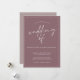 Inbjudan till minimal Lila av plommonskript. Imponera elegant på dina gäster i bröllop med den här trendiget på en bra bröllopsinbjudan med ett vackert, vitt skript på en fantastisk lila bakgrund. Inbjudan har en fantastisk utformning, med moderna och minimala vibes, perfekt för ditt enkla, trendig, minimalistiska bröllop. Den minimala layouten och snyggten uppmärksammar det vita skriptet, vilket kontrasterar mot den slående plommonbakgrunden. Den här inbjudan anger tonen för en vacker inställning i bröllop, omgiven av blommigtar för plommon, vitt eller neutralt, och matchande mauve- eller lila bröllop dekor. En perfekt som tillägg till ett muterat eller vackert plommon lila bröllop firande. Söndag Collective © av Rachel Hannah Gee