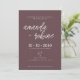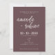 Skapa ett påstående med den här minimalistiska handskriven skriptbröllopsinbjudan, med ett modernt elegant-kalligrafteckensnitt på en mörk mocha-bakgrund. Den här inbjudan visar ett vackert skript par namn, en ren serif-layout och en delikat illustration av blommigten för ett litet stycke romantik. En perfekt som blandar contemporary och tidlös design. Idealisk för modern, rustik eller boho bröllop är denna inbjudan anpassade att matcha din speciella dag. Oavsett om du planerar ett fall, vinter eller kvällstid bröllop, kommer den här sofistikerade designen att imponera på dina gäster.