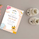 Välkomna din lilla i stil med anpassadets babyduschinbjudan. Den här mallen har en modern design som fungerar för alla teman och är lätt att anpassa med din händelseinformation, t.ex. namn, datum, tid och plats. Perfekt för att fira med vänner och familj. Den här inbjudan skrivs ut på högkvalitativ papper och levereras med matchande kuvert som tillval.