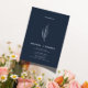 Gör ett djärvt och elegant påstående med denna minimalistiska blåbröllop med marktypsnitt och handdragna botaniska löv-detaljer i vitt. Perfekt för det moderna bröllop som omfattar ett enkelt, sofistikerat stil med en viss naturlighet. Den djupa flottbakgrunden gör att det blir en tidslängd som gör att layouten förblir snygg och contemporary. Bästa för par-planering: Minimalistiska, formella eller moderna teman för marinblått bröllop-färg i bröllop: Fall, vinter- eller kvällsceremonier Eco, naturinspirerade eller botaniska evenemang