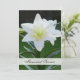 Det vackra fotografiet av en lilja gör en perfekt inbjudan till minnesgudstjänst. Orden "Minnesgudstjänst" finns under liljan och baksidan av inbjudan innehåller alla detaljer om minnesgudstjänsten, inklusive fullständigt namn, datum, avliden ... och detaljer om ceremonin. Ett fint sätt att inbjuda dina gäster till en minnesgudstjänst för din älskade. Copyright kondoleans tack