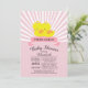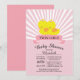 Modern djärv och söt, ducky Baby Shower-inbjudan med en söt gult ankor för en liten babydusch i flicka. Vår klassiska gummi anka inbjudan har ett par söta twillingar anka med rosa och contemporary som är placerad på en ljus rosa och vit vintage, strålande rand och har en återpassande effekt för en extra speciell beröring. Perfekt för en anka-temad babydusch för flicka.