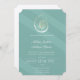 Bröllopbjudan innehåller en elegant av ett årstidsskal för spiral mot en färgad av havsglas. Det finns diagonalt rand i en motsvarande skugga i bakgrunden för att lägga till ett modernt djup i den här bröllopsinbjudningen, och kalligrafiskript för elegant lägger till en chic kustpekare. perfekt för tropiskt, strand eller oceantemat bröllop.