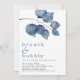 Brunch Bubly Blue Foliage Möhippa. Informellt stil. Modern stora vattenfärgsdjupa blå löv dekorerar överkanten och sidhuvudet är stort nedanför i gemener med snyggt med detaljerna vid grund. Anpassa texten till dina egna detaljer.