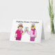 Två tecknaders kvinnor i funky skuggar och rosa och mauve konfektionerar varandra med champagneglas. orden "Möhippa bjudande" följer med bilden.