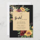 Moderna solblommor och Burgundy Inbjudningskort för möhippan. Foliage. Bakgrund för svart och Gult.