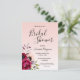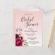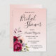Framtill: Ett modernt och elegant inbjudningskort för möhippan. En ro guld-ombre tittar bakgrund. Dekoreras med mörkens lila och burgundblommor och ro rosa Flowers. Mallar för namn, duschens datum och ställe. Texten: Möhippan är skriven med ett stort stil-skript, svart färgad brev. Baksida: ro guld ombre-bakgrund.