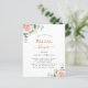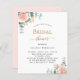 En vit chic bakgrund. Dekorerad med en blommigt för guld och rosa, blommor från ro och grönt vattenfärgad eukalyptus löv, spriter, grönsaks- och faux ro sprigs. Anpassa och lägg till bridens namn för att vara och närmare party. Svart och guldfärgad färgad brev. Bakåt: ro guld, färg. 1 lakan = 1 inbjudan tryckt kant till kant.