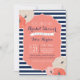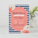 Fet marin blå och vit rand, strykande korall ram och korallblommor fyller hela utseendet. Använda den här designen för en möhippa, babydusch, födelsedag eller årsdag! Möjligheterna är oändliga!