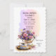 En mycket söt Möhippa Tea Party-inbjudan inramades i vår blomma färg och en färgstark tekanna omgiven av blommor. Jag har valt att känna Blue Shimmer pappert att du kan byta till en som du kanske vill ha bättre.
