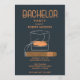 Inbjudan till möhippa i en orange och marinblå design med cigarr och whiskyglas. Anpassa med dina festsdetaljer.