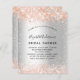 En faux silver metallisk tittar bakgrund. Dekorerad med ro guld faux glitter. Anpassa och lägg till information om namn och party. Namn är skrivet med ett handskript i stil