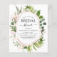 Budgeten Eucalyptus Greenery Botanical Watercolor och Ro Guld - Rosa Geometric Vår bröllop Inbjudningskort för möhippa på vit bakgrund - innehåller vacker och elegant manustypografi med modernt botaniskt löv och grön för speciella Briden att vara firande.