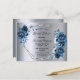 Framtill: En glamorös, faux silver-metallisk tittar bakgrund med en faux silver-geometrisk formad ram. Dekorerad med marin blått och nyans av blå vattenfärgade blommor, ro. Mallar för uppgifter om bruden och party namn. Namn är skrivet med ett handskript stil, svart färgad brev. Perfekt för en vintermöhippa. Tips! Om du inte vill att det ska se ut som ett vykort klickar du på anpassa, går till baksidan och tar bort delaren och lägger till frimärke.